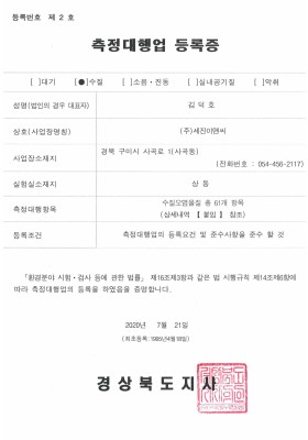수질 측정대행업 등록증