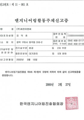 엔지니어링활동주체 신고증