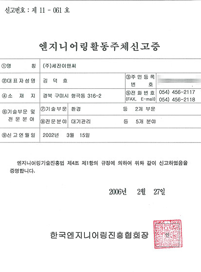 세진이앤씨의 대기, 수질, 소음·진동 분야의